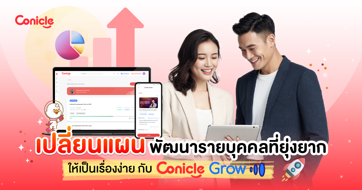 การพัฒนาบุคลากรในองค์กรเป็นเรื่องสำคัญ แต่บ่อยครั้งที่ HR ต้องเจอกับความท้าทายในการบริหารจัดการแผนพัฒนารายบุคคล (Individual Development Plan: IDP) และคำถามที่ตามมาว่า "ลงทุนไปแล้ว เห็นผลจริงไหม?" หรือ "งบประมาณที่ใช้ไป คุ้มค่าแค่ไหน?" Conicle Grow คือคำตอบที่จะเปลี่ยนความท้าทายเหล่านี้ให้เป็นเรื่องง่าย และเห็นผลลัพธ์ที่ชัดเจน