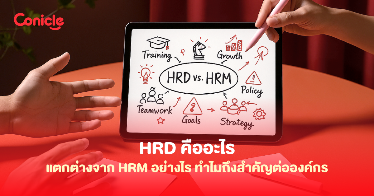 ในโลกธุรกิจที่ขับเคลื่อนด้วยคน “ทรัพยากรมนุษย์” คือหัวใจสำคัญที่กำหนดทิศทางการเติบโตขององค์กร หลายคนอาจคุ้นเคยกับคำว่า HRM หรือ Human Resource Management มากที่สุด เพราะเป็นการบริหารทรัพยากรบุคคลตั้งแต่การวางแผน จัดหา และดูแลภาพรวมต่าง ๆ แต่ยังมีอีกหนึ่งฟังก์ชันที่สำคัญไม่แพ้กันนั่นคือ HRD ซึ่งจะเน้นไปที่การพัฒนาบุคลากร เพื่อช่วยปลดล็อกศักยภาพของพนักงานและองค์กรอย่างยั่งยืน วันนี้ Conicle จะพาไปเจาะลึกว่า HRD คืออะไร แตกต่างจาก HRM อย่างไร และเหตุใดจึงเป็นจิ๊กซอว์ชิ้นสำคัญที่ทุกองค์กรยุคใหม่จะขาดไปไม่ได้
