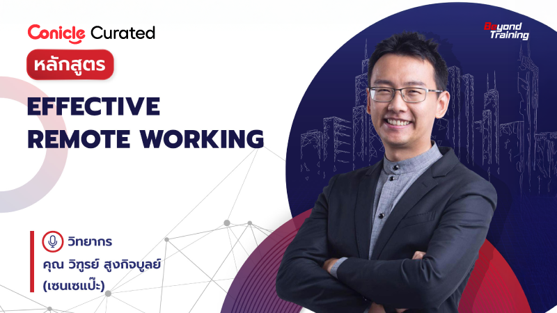 หลักสูตร "Effective Remote Working" อยู่ต่างที่กันทำงานได้ดี จะช่วยให้การทำงานมีประสิทธิภาพมากยิ่งขึ้น รู้จักตัวเองและสามารถปรับวิธีการทำงานในสภาวะ Remote working ได้เหมาะสม โดยวิทยากรที่มีความสามารถ “เซนเซแป๊ะ” วิฑูรย์ สูงกิจบูลย์ ประสบการณ์การทำงาน 12 ปี สายงานวิศวกรและผู้จัดการในสายงานวิจัยและพัฒนารถยนต์โตโยต้า และเป็นนักงานเขียนที่รับได้รับ Best Seller ที่พร้อมถ่ายทอดเนื้อหาและเทคนิค ที่เพิ่มพลังสมาธิให้กับการทำงาน สร้างสมดุลในการทำงาน และความสุขในการทำงานแบบ Remote working